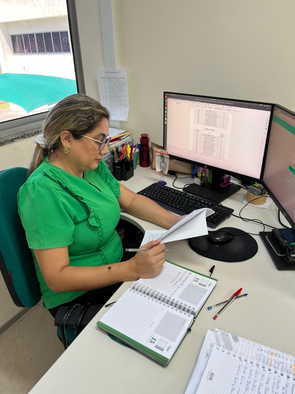 Com o tempo, aprendeu. Mais que um prédio, a Defensoria era um encontro: com histórias, pessoas e com ela mesma. Começou no setor de Almoxarifado. Ao lado de sua gestora, Dona Ivone (in memoriam), aprendeu mais do que rotinas: aprendeu sobre cuidado, sobre servir. Recebia os pedidos, separava o material e até ri ao lembrar de uma regra quase sagrada: “só pode solicitar duas resmas de papel”.